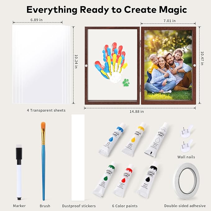 - EVERLASTING FAMILY TIME CAPSULE: Capture the fleeting moments of your child's growth in timeless elegance–each handprint tells a story that grows more precious as the years pass. Create your own artwork for your home with our lovely family handprint kit. Use the paints to print your hands on the insert, then display in the frame included