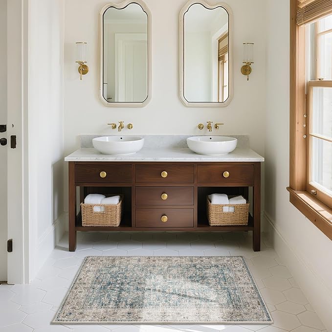 Machine Washable Entryway Throw Rug: Door Mat Indoor Entrance 2x3 Rug Boho Small Area Rug Non-Slip Low Pile Kitchen Rug for Front Door Indoor Entrance Entry Kids Room