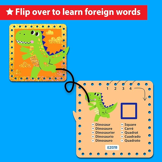 - 🎯Complete Educational Kit🎯 Everything included for immediate play: 10 premium double-sided animal and space-themed cards with pre-punched holes, 10 dual-tip laces, and multilingual learning guides - no additional purchases needed.