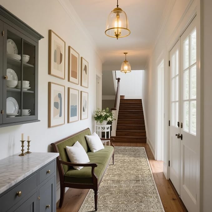 Washable Kitchen Rug Runners for Hallways: 2'x10' Bedroom Runner Rug Non Slip Low-Pile Stain Resistant Soft Indoor Floor Carpet Runner for Indoor Entryway Hallways Kitchen Laundry Room Farmhouse