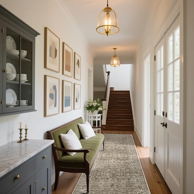 Machine Washable Kitchen Runner Rugs: 2'x10' Hallway Rug Stain Resistant Non Slip Low Pile Soft Carpet Runners for Hallways Indoor Entryway Kitchen Laundry Room Bedroom Bathroom Farmhouse