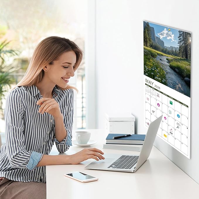 - 🏞️【Easy to Hang & Stickers】- The calendar 2025-2026 is easy to hang, each page is equipped with a well-positioned hanging hole, and the hanging hole is kept at a certain distance from the edge, not easy to break. We also include three stickers for your convenience to mark events. Additional monthly planner on the last page.