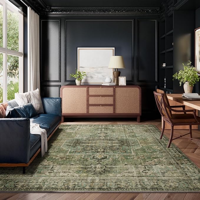 8x10 Area Rugs for Living Room: Washable Bedroom Rug Boho Vintage Rugs Stain Resistant Non Slip Low Pile Soft Lightweight Carpet for Kitchen Dining Room Farmhouse Nursery Kids Room