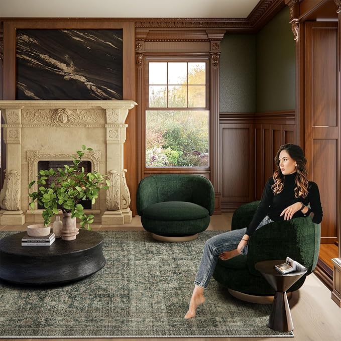 Washable Living Room Area Rug: 8x10 Rugs for Bedroom Vintage Stain Resistant Non Slip Low Pile Lightweight Boho Carpet for Kitchen Dining Room Farmhouse Kids Room Nursery