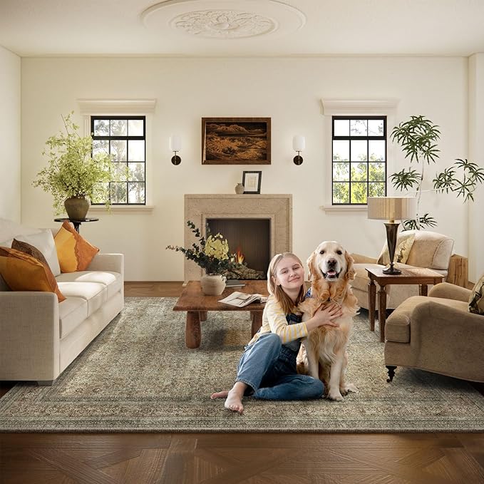 Washable Area Rugs for Living Room: 5x7 Bedroom Rug Boho Vintage Rugs Stain Resistant Non Slip Low Pile Lightweight Soft Carpets for Dining Room Kitchen Nursery Kids Room Farmhouse Living Room