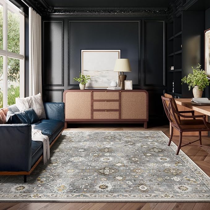 Machine Washable Rug for Living room: 8x10 Area Rugs Boho Vintage Rugs Stain Resistant Non Slip Low Pile Lightweight Soft Carpet for Bedroom Kitchen Dining Room Nursery Kids Room Farmhouse Home Office