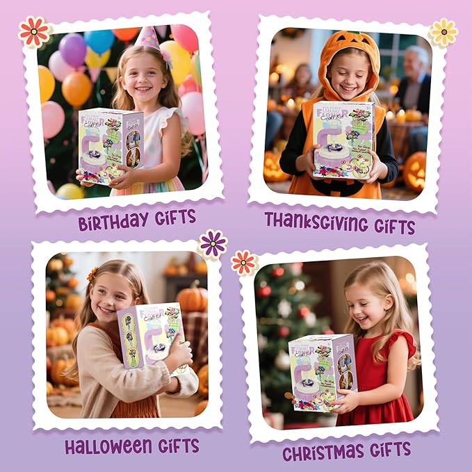 - Unleash Creativity: This DIY flower press kit includes everything kids need to design unique bouquets for themselves, family, and friends. With vibrant components and a simple flower-making garden tool, they can create beautiful arrangements in no time