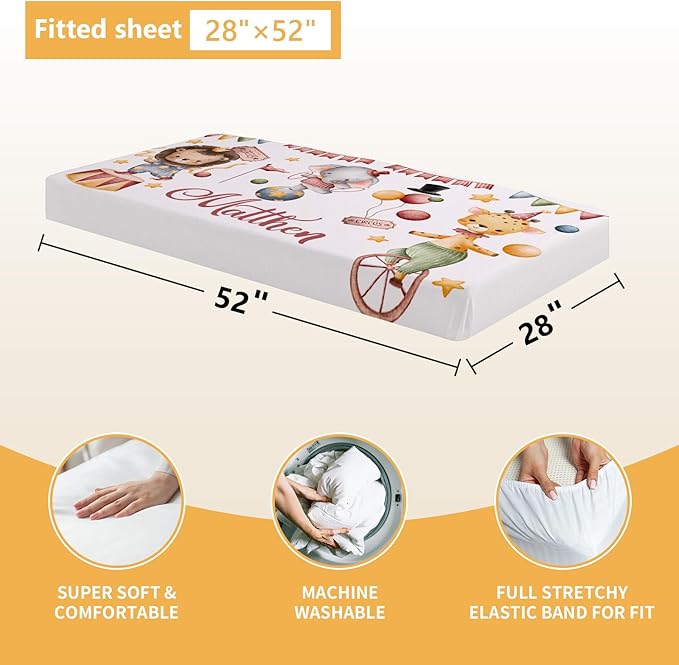 Custom Baby Crib Bedding Set, 5 Pcs Personalized Name Baby Crib Set with Double Layer Blanket, Soft Circus Animals Nursery Bedding Set for Girls Boys, Customized Gifts for Infants Toddlers