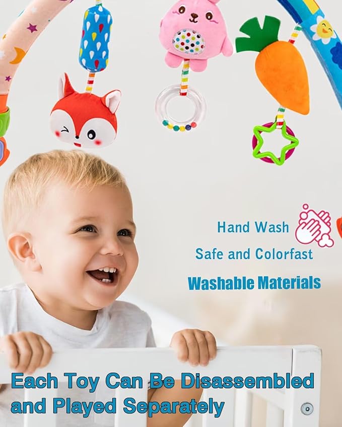 - Car seat toys,It is an early development toy.crib toys hanging made of washable materials.Each stroller toy can be detachable dsassembled and played separately.