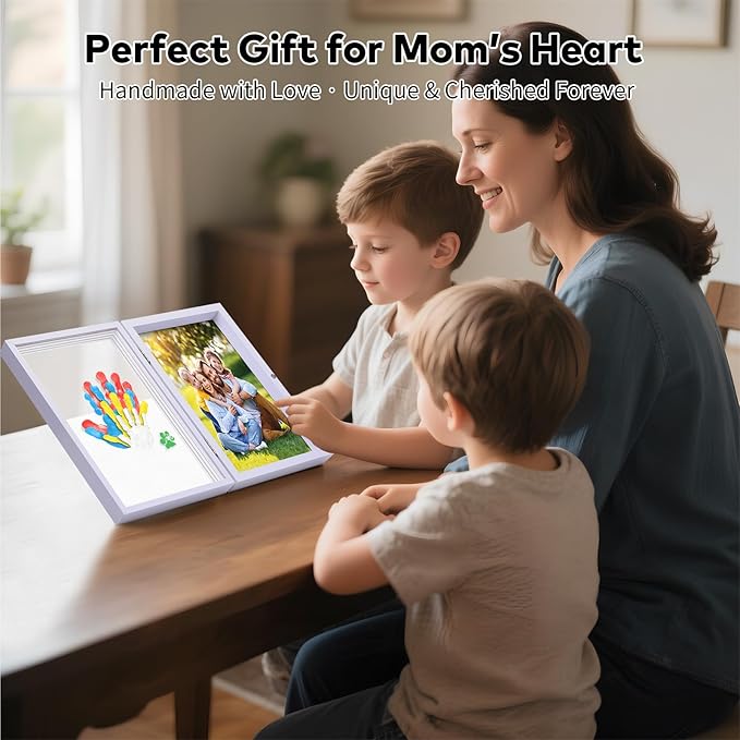 - DUAL DISPLAY MODES & PHOTO AREA: Our upgraded keepsake frame also have a photo frame feature, the photo side is big enough to hold one large photo or several smaller ones. Imagine this framed treasure on your living room wall: your toddler's tiny hand nestled in yours, surrounded by family photos that spark conversations for generations