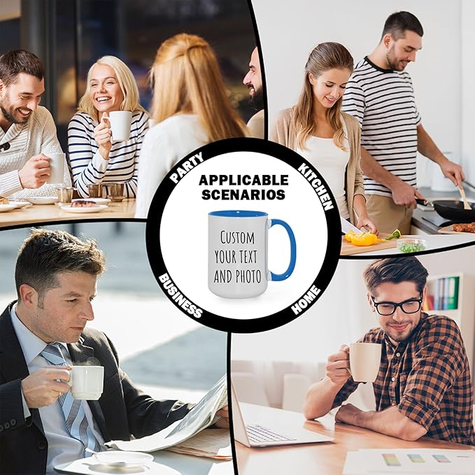 Custom Mug Upload Your Picture Personalized Coffee Mug with Photo Text Name Customized Cup Unique Ideas Gifts for Men Women Mom Dad Halloween Christmas Thanksgiving Friend Family (Blue, 11oz)