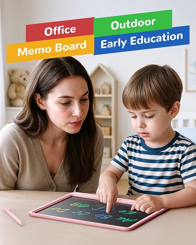 KOKODI LCD Writing Tablet, 12 Inch Colorful Toddler Doodle Board Drawing Tablet, Erasable Reusable Electronic Drawing Pads, Educational and Learning Toy for 3-6 Years Old Boy and Girls(Pink)