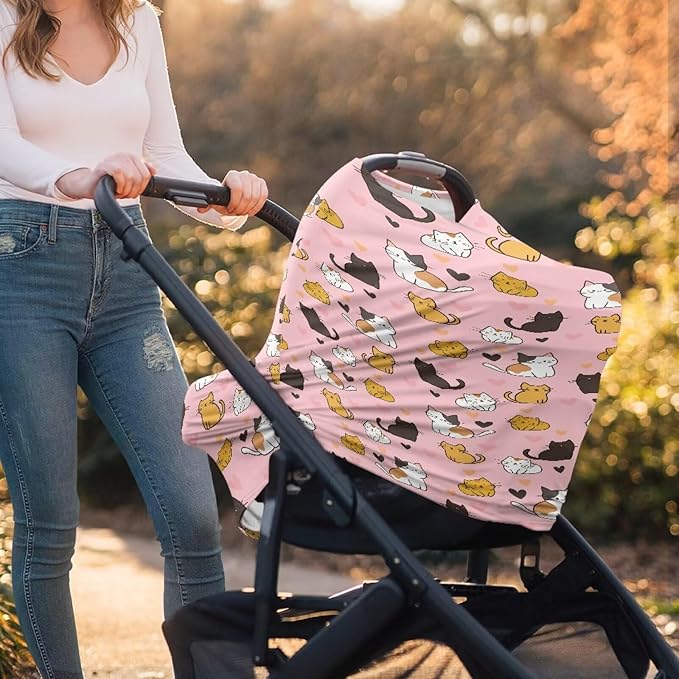 Binienty Baby Car Seat Covers - Cartoon Kitten Infant Carseat Canopy Multi-use Stretch Nursing Cover for Breastfeeding